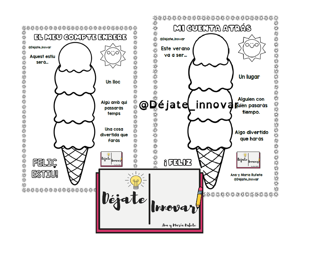 Si tienes alguna duda o pregunta podéis contactar con nosotras en dejateinnovar@gmail.com Además, si utilizas nuestros materiales o fichas, nos encantaría que nos mencionaras en las redes sociales (Twitter e Instagram): @dejate_innovar