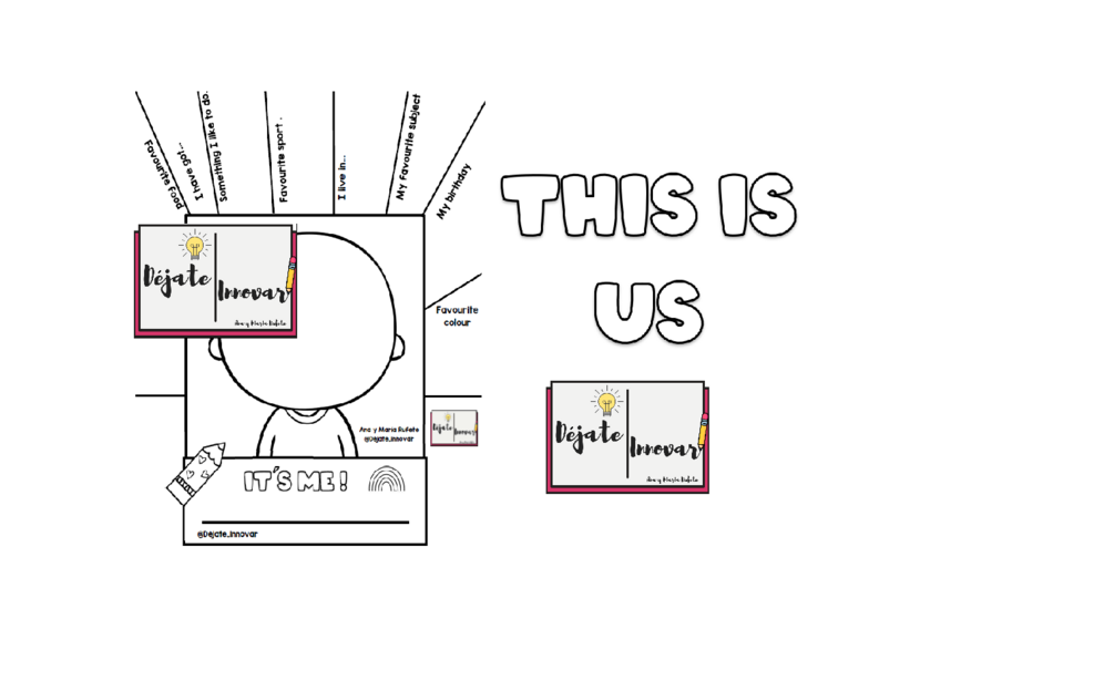 Actividad "It´s me" para la expresión escrita con el fin de conocer a nuestros alumnos y realizar una presentación sencilla sobre ellos. Implica realizar un retrato y hablar sobre sí mismos siguiendo unas consignas sencillas (Age, favourite colour, food, subject, sport, I like..), . La actividad lleva la ficha y el rótulo "This is us" para realizar un mural en el aula.