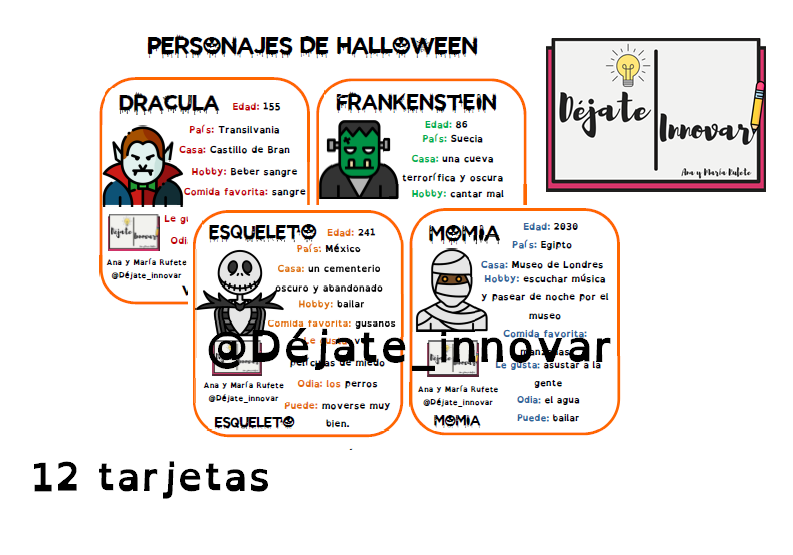 Si quieres ver más de este material, pincha aquí https://www.dejateinnovar.es/halloween-characters-cards