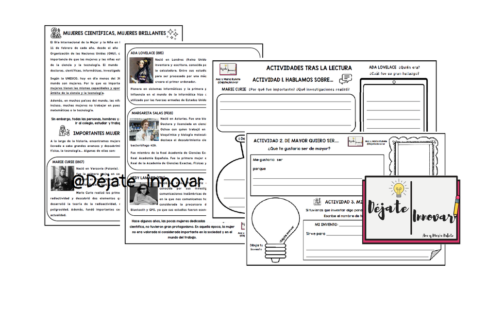 Lectura comprensiva con actividades para celebrar el Día Internacional de la Mujer y la Niña en la Ciencia en la escuela con el fin conocer mujeres que revolucionaron el mundo de la ciencia con sus descubrimientos, avances y trabajos, suponiendo mejoras en la posteridad y en muchos recursos de los que hacemos uso hoy en día.